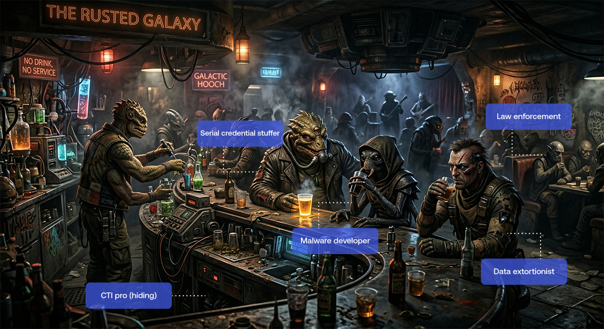 All kinds of different personas logged in to BreachForums, and not just cybercriminal actors. Think of it as the online equivalent of the Mos Eisley cantina, the rough-edged alien bar in the original Star Wars film where creatures from around the galaxy mingled. Serious cybercriminals might be sitting at the bar, law enforcement and CTI professionals are lurking in the booths.