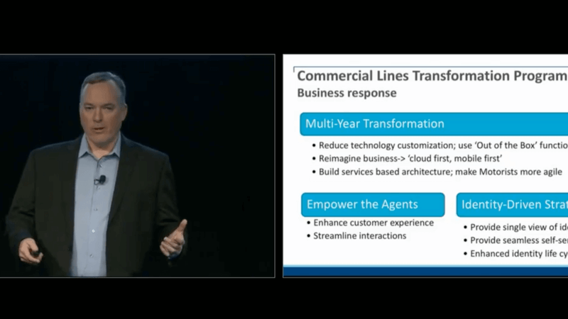 So it was really about breaking down the culture, getting to be more collaborative thinking, innovatively, being willing to make mistakes, and getting to a point where we're really ingraining that continuous improvement mentality going forward. So obviously change was needed at the time and from that vision and from all those strategies that were defined, one of the main transformations from a technology perspective was our commercial lines transformation program. So it was a multi-year transformation process and it was really anchored in creating a new company. So, you know, looking at the past and seeing where we were and really trying to change all of the things that the agents were going through, really modernizing the whole approach, not just the technology but the business and the customer experience. So you get into a reducing that technology customization, getting back to an out of the box, straightforward implementation. We were very heavily customized in the past, re-imagining the business. In Dave's version, he really emphasized cloud first, mobile first. When we started down this process, cloud was really a dirty word for us. We were totally entrenched in on prem. We're going to put our arms around our technology and really manage it ourselves and we really didn't have any trust of the cloud.